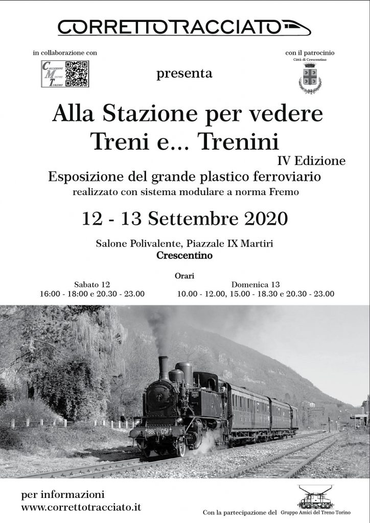 Anche quest’anno si rinnova l’appuntamento per la manifestazione organizzata da Corretto Tracciato presso il salone polivalente del Comune di Crescentino. La manifestazione “Alla Stazione per vedere Treni e… Trenini”, giunta alla quarta edizione, si ripropone al pubblico con l’esposizione del plastico in scala H0 a norme Fremo, sempre in aggiornamento ed evoluzione. Grazie alla consueta collaborazione con il CMT (Collezioni Mostre Turismo) ed il patrocinio del Comune di Crescentino siamo riusciti, seppur in una formula leggermente diversa dagli scorsi anni, ad allestire il plastico in modo che sia fruibile al pubblico nonostante le limitazioni imposte dal Covid19. Proprio per ottemperare alle normative legate all’emergenza sanitaria si segnala che l’accesso al locale dell’esposizione sarà soggetto ad alcune regole e limitazioni quali l’obbligo delle mascherina, accesso contingentato in base al flusso di presenze, rilevazione della temperatura all’ingresso, etc.