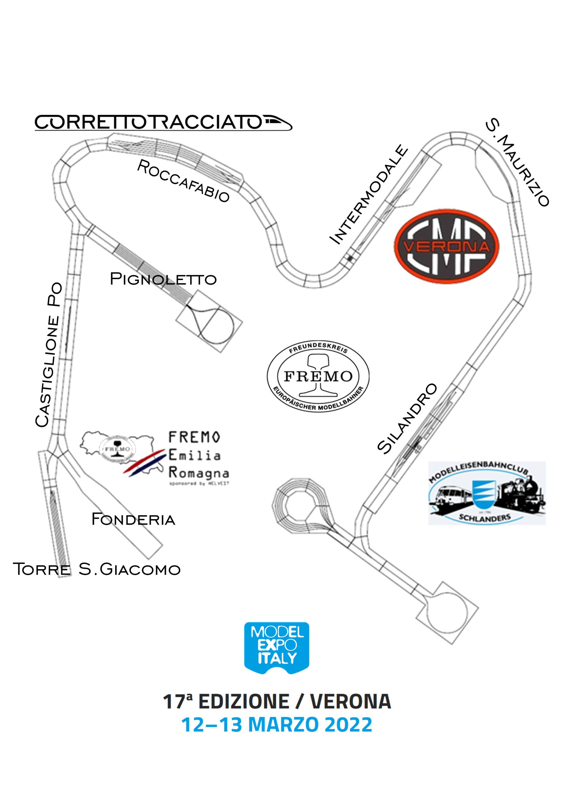 CorrettoTracciato in compagnia di CMF Verona, Fremo Emilia-Romagna e Club Modellisti Silandro sarà presente al Padiglione 11 Stand 40, in occasione della prossima edizione del ModelExpo Italy di Verona, con un grande plastico modulare a norme FREMO di circa 100metri di sviluppo lineare.